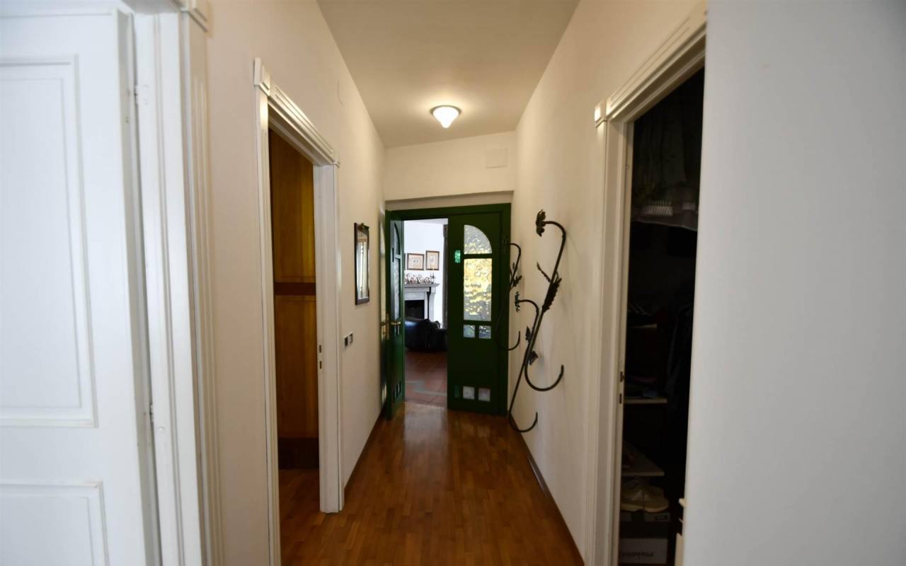 Si entra attraverso il grande porticato coperto, molto luminoso e chiuso a vetri, che grazie alle piante ad alto fusto, crea una bellissima atmosfera di relax; l'entrata, nel doppio soggiorno, dove da una parte si ha la zona pranzo e dall'altra dei divani davanti al camino ed un bagno, si ha da due porte, entrambe affacciate sulla veranda. La cucina è abitabile e con un comodo terrazzo. Alla zona notte si accede dal soggiorno, dove troviamo due grandi camere matrimoniali, uno spazioso bagno ed una stanza adibita a cabina armadio.